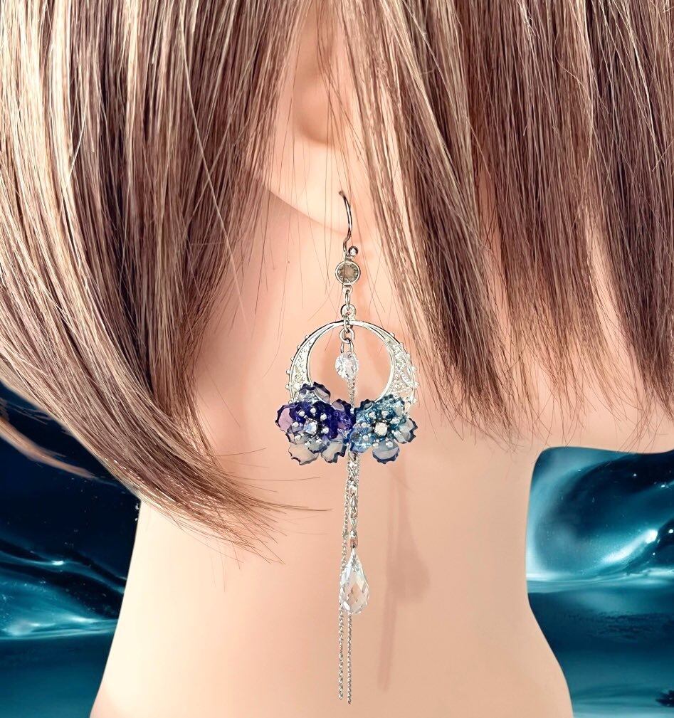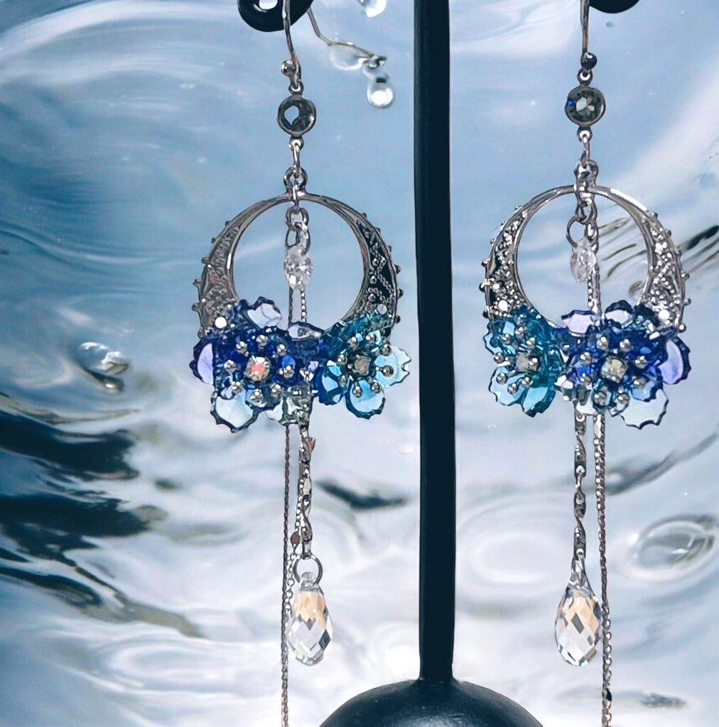 アクリル(レーザー加工・UV加工←UVレジンで加工していることではありません。)・キュービックジルコニア・貴和クリスタル・レジン・金具:真鍮(シルバーカラー・画像参照)