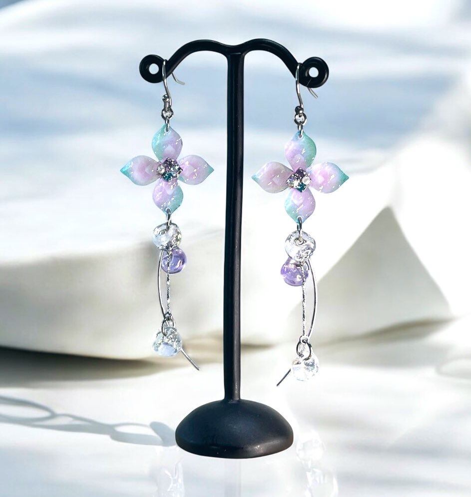 雨に濡れた紫陽花をイメージしたピアス/イヤリング。