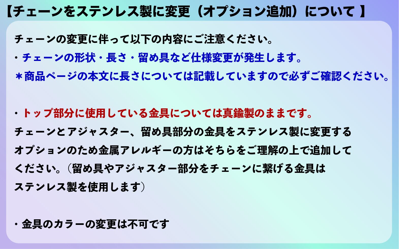 *チェーンの長さのカット指定及び金具のカラーの変更は不可です。