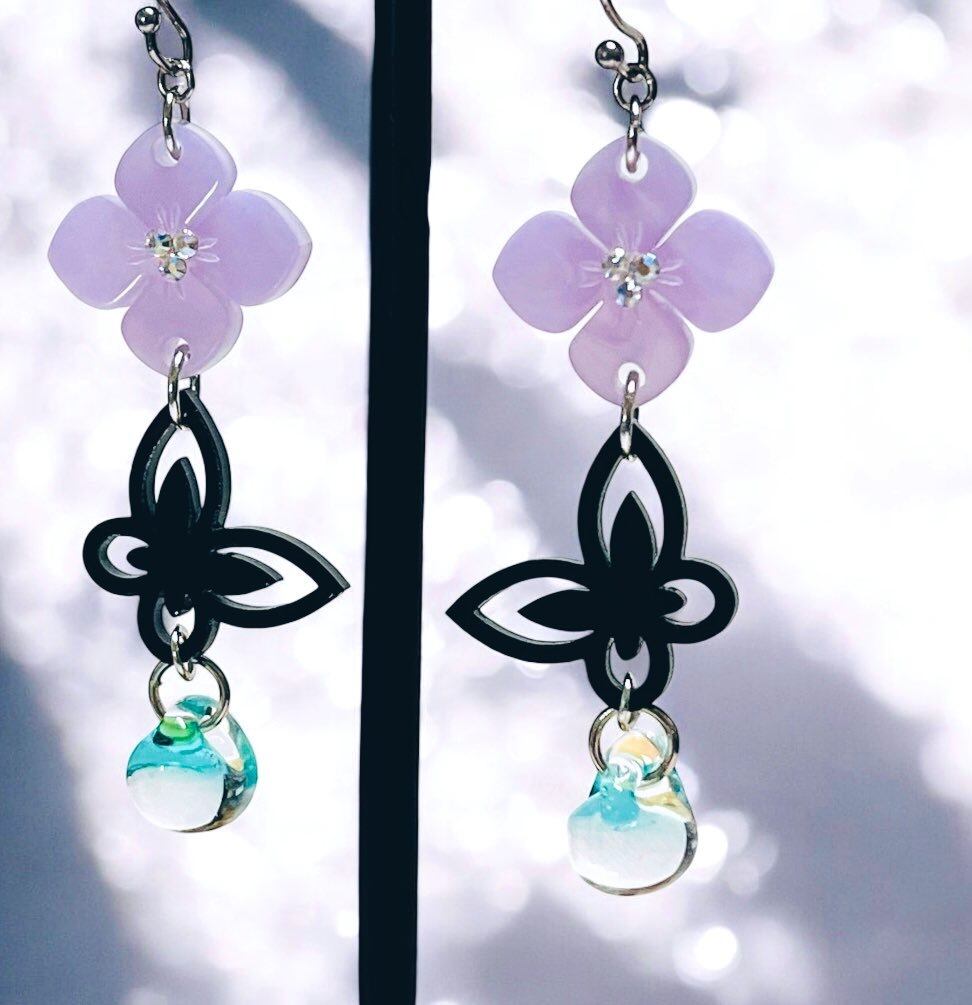 【在庫限り】紫陽花と蝶々ピアス/イヤリング(胡蝶しのぶイメージ)