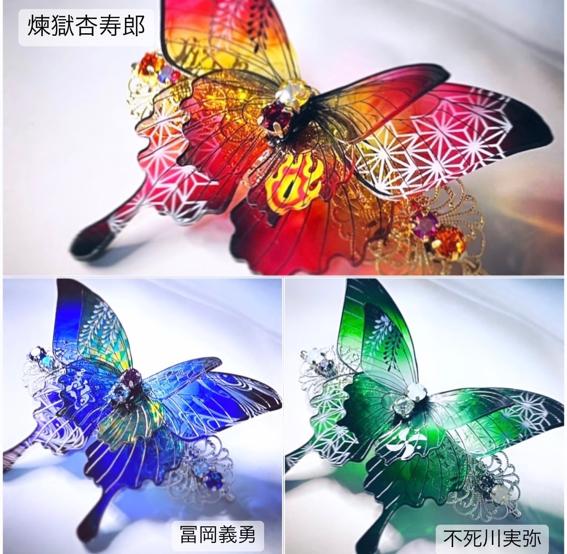 立体的な蝶々の作品及び蝶々の羽根の作品は本物の蝶の羽根のような繊細な雰囲気を表現するため市販ではあまり見かけない薄いアクリルを取り寄せて制作しています。通常より繊細な作りとなりますためお取り扱いにはご注意ください。