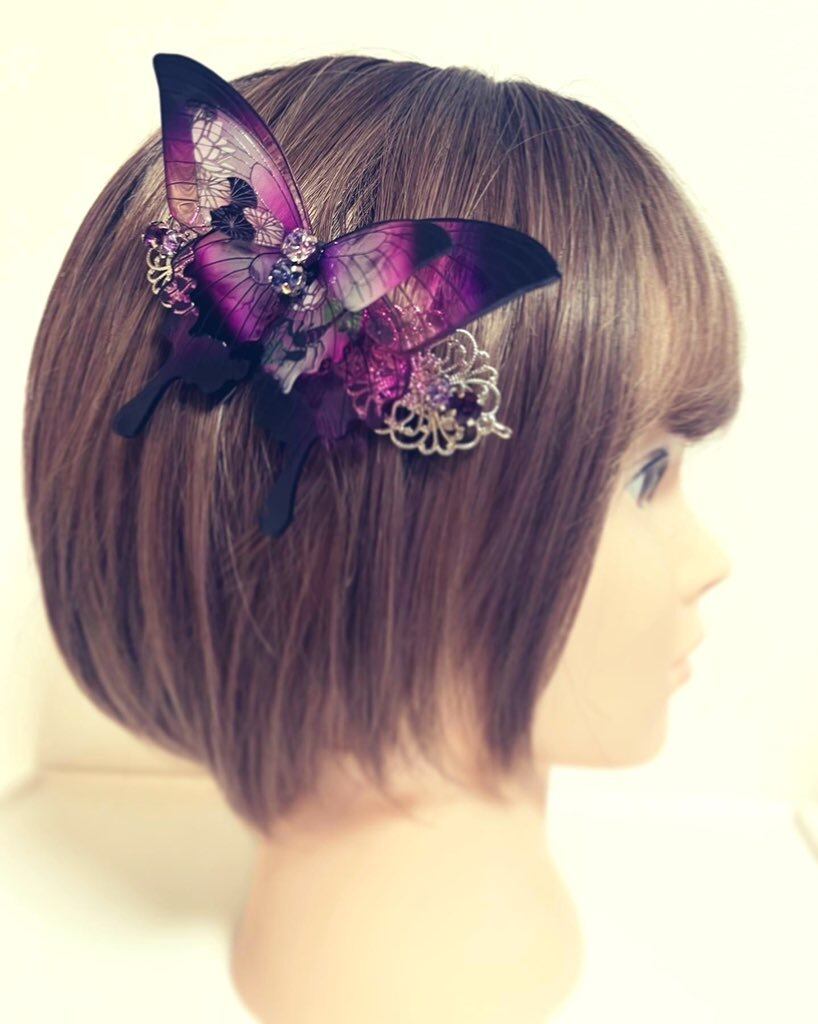立体蝶々バレッタ(三途春千夜イメージ)