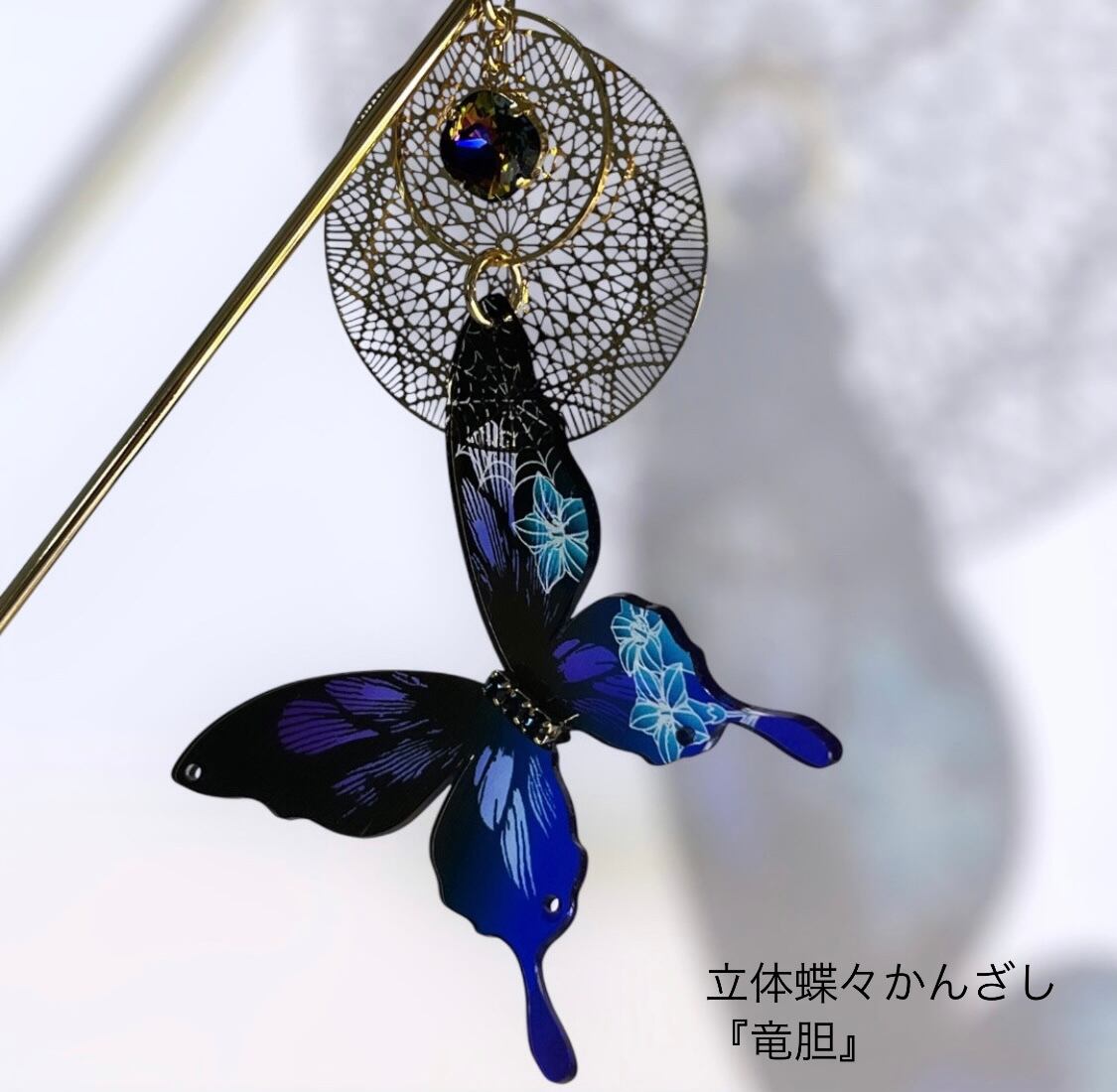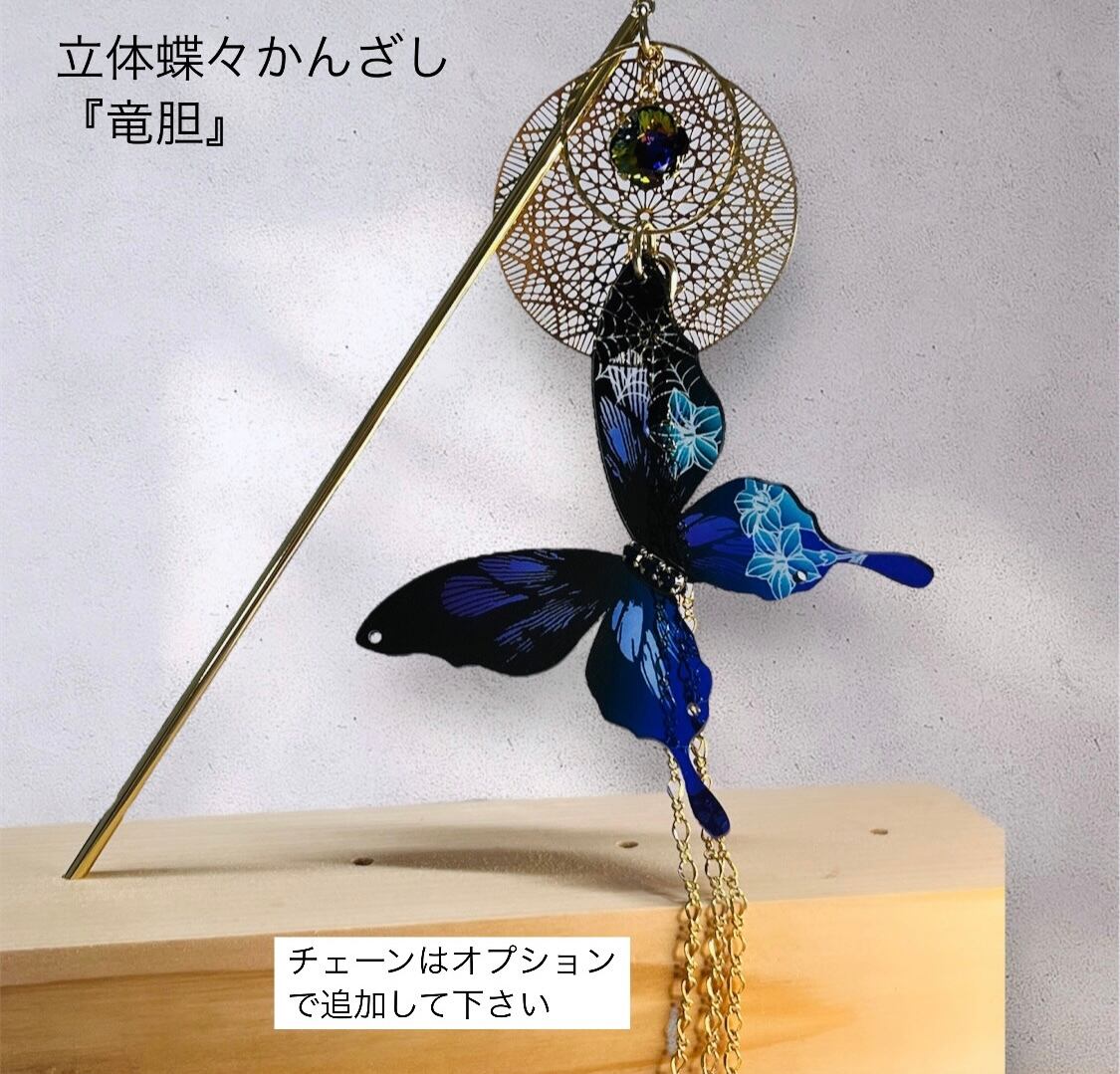 立体的な蝶々のかんざし各種(『蘭』・『竜胆』)