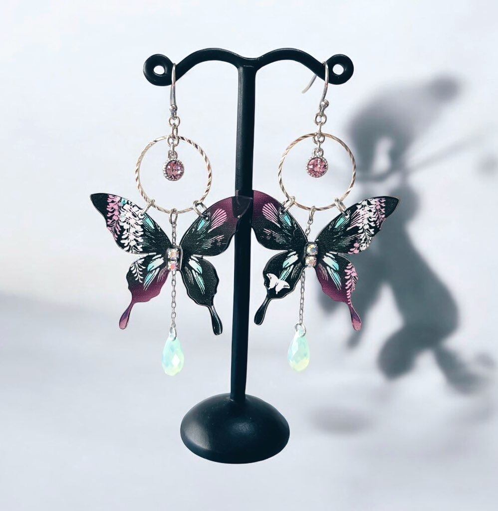 【在庫限り】立体蝶々ピアス/イヤリング(胡蝶しのぶ羽織カラーイメージ)
